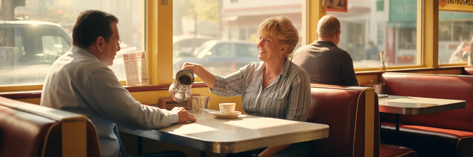 Cozy interior of a local West Jordan diner.
