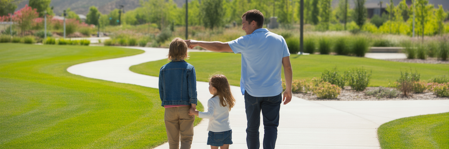 Family enjoying a walk in a West Jordan park.
