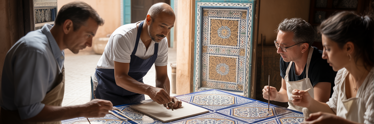 Travelers learning a craft from a local.