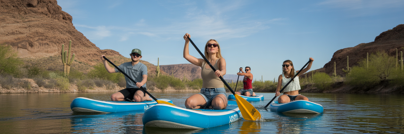 Friends paddleboarding on the Salt River near Phoenix.
