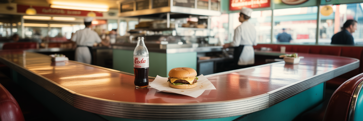Classic burger on a historic diner counter in LA.